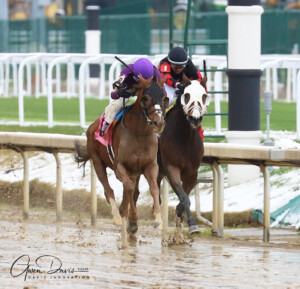 Time for Trouble, outside, winning the 2023 Claiming Crown Iron Horse. Photo by Gwen Davis/Davis Innovation